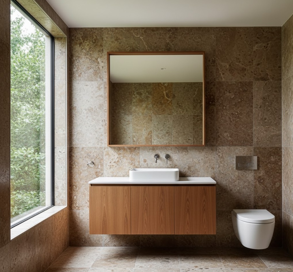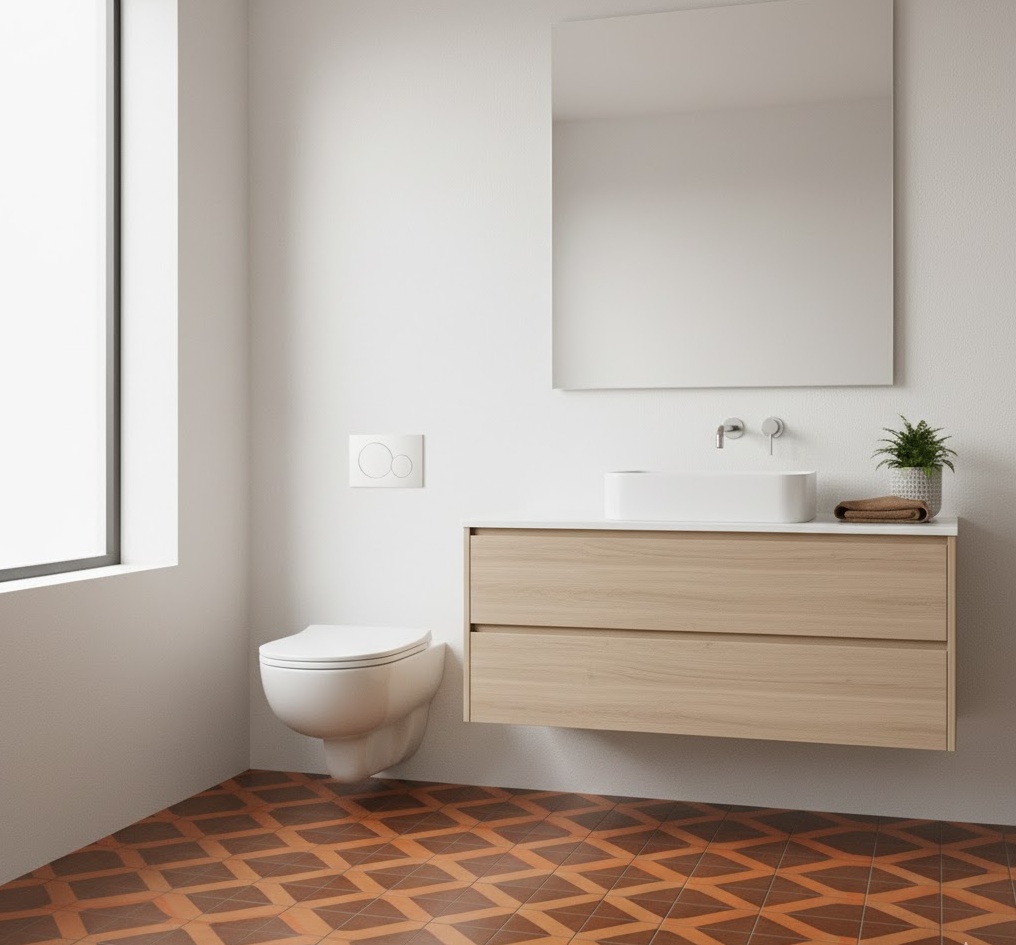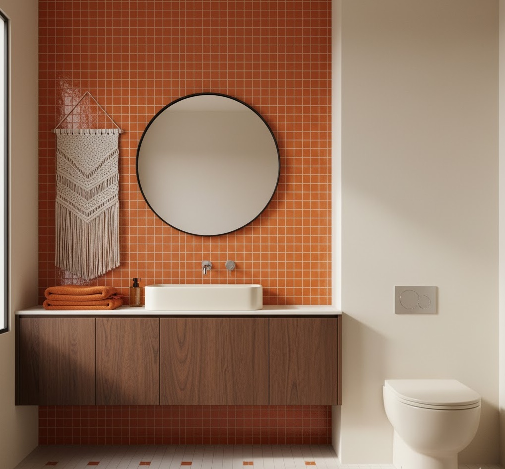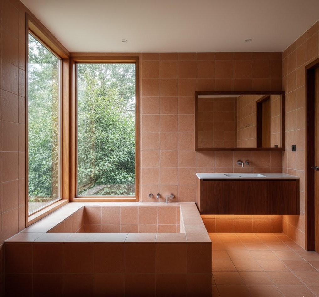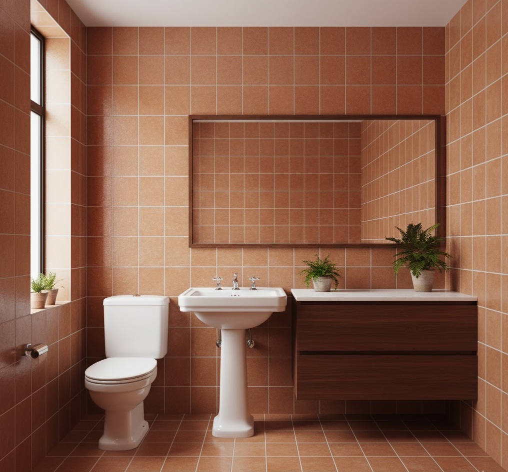 Bring warmth and a Mediterranean-inspired touch to your vintage 70s bathroom with the timeless appeal of terracotta tiles. These earthy, reddish-brown tiles were incredibly popular for floors and walls, creating a rustic yet chic aesthetic. Their natural texture and warm hue provide a grounding effect, pairing beautifully with white sanitaryware, dark wood accents, or even vibrant potted plants. Terracotta is also highly durable and practical for a bathroom environment, offering excellent longevity. The mood is inviting and sun-drenched, evoking a sense of relaxed comfort and natural beauty, perfectly capturing a specific facet of 70s design.