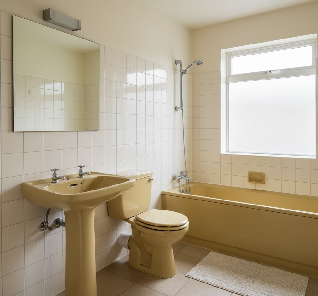 For an undeniably authentic vintage 70s bathroom, nothing quite says the era like a complete coloured bathroom suite. From avocado green and harvest gold to sky blue and dusky pink, these matching toilet, basin, and bath sets were incredibly popular. This bold choice creates a cohesive and immersive retro experience, instantly transporting you back in time. Complement the suite with neutral wall colours or subtle patterns to allow the vibrant sanitaryware to be the star. Functionality is as standard as any modern suite, but the aesthetic impact is profoundly nostalgic, offering a truly unique and characterful space.