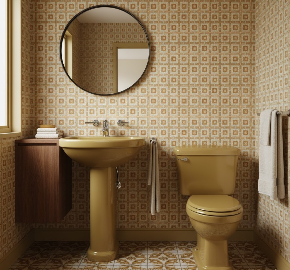2. Harvest Gold Retro Bathroom