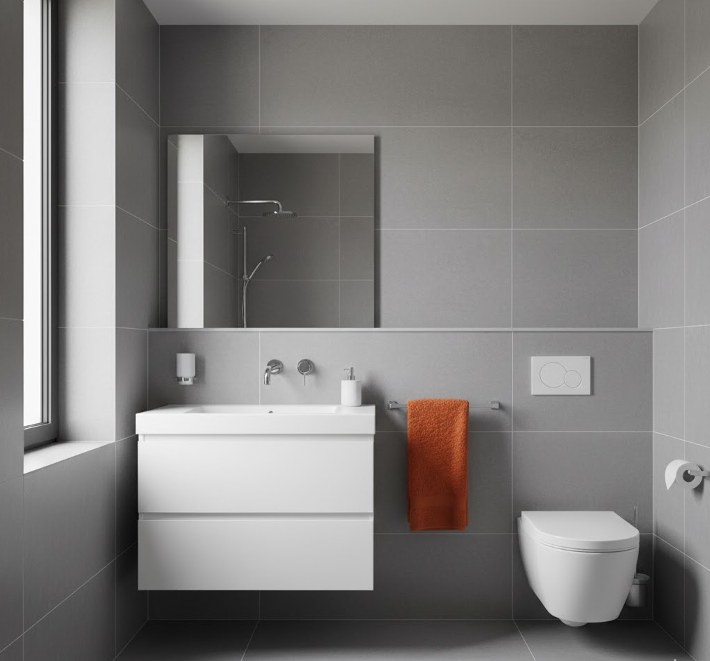 Discover the sophisticated side of the era with a sleek 70s modernist bathroom, blending clean lines, functional design, and a touch of futuristic flair. This style often features minimalist sanitaryware, integrated storage, and a restrained colour palette of whites, greys, and muted earthy tones, sometimes with a single bold accent. Materials like polished chrome, large format tiles, and smooth laminates are key, creating a streamlined and uncluttered space. Functionality is paramount, with an emphasis on efficiency and ease of use. The mood is one of understated elegance and quiet confidence, showcasing the 70s’ forward-thinking approach to contemporary living and design.