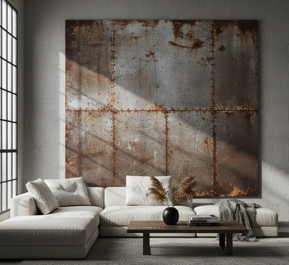 Industrial loft wall art brings an edgy, raw, and urban aesthetic to your living room, drawing inspiration from factory spaces and utilitarian design. This distinctive style of wall art for living room often features exposed materials, metallic elements, and a focus on functionality and robust construction. Materials commonly include reclaimed wood, distressed metal, concrete-effect panels, or large-scale graphic prints with a gritty, urban feel. The colour palette typically leans towards muted greys, blacks, browns, and metallic tones, creating a strong, no-nonsense mood. Functionally, industrial wall art can enhance the architectural character of a loft-style living room or add a touch of urban cool to a more traditional space, providing a bold and authentic statement that celebrates raw beauty and practical design.